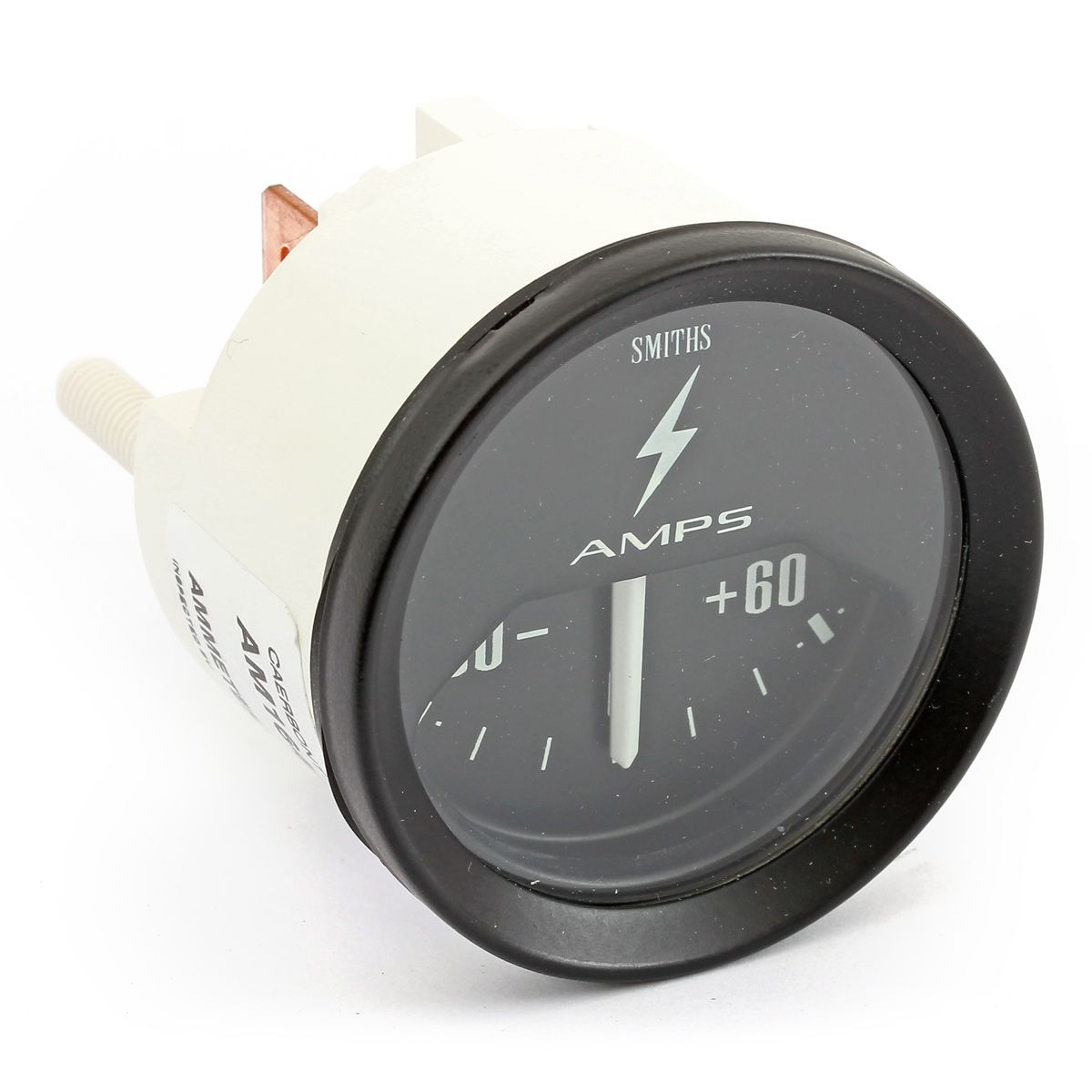 Replacement Classic Mini ammeter 60/60 gauge with a black face manufactured by Smiths Instruments, originally mounted in the centre dash binnacle.