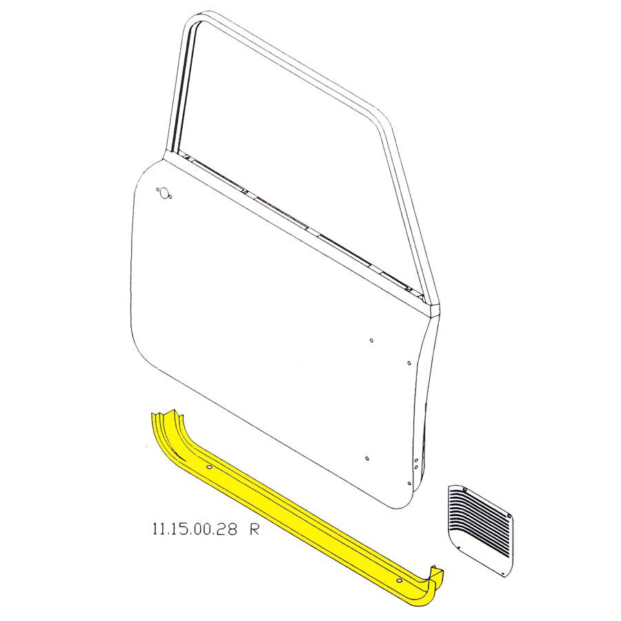 Right door bottom repair panel, allows replacement of the underside of the door frame if it is rotten without the expense of buying a complete door.